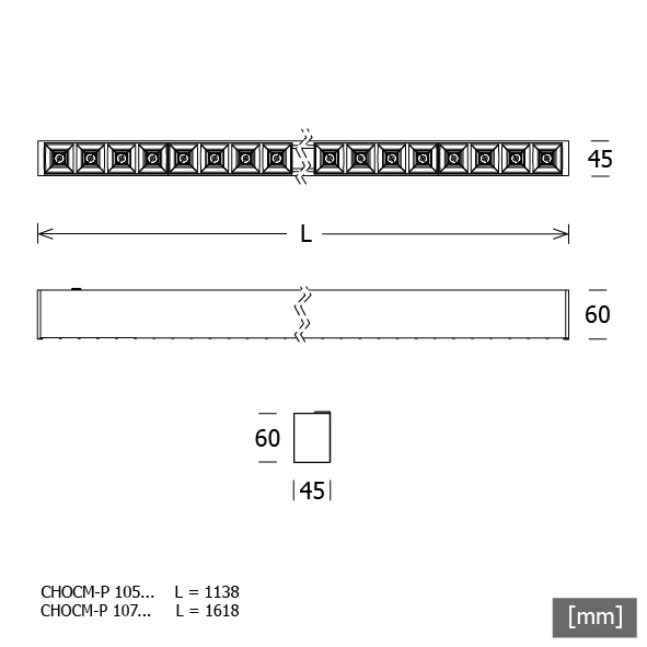 Dimensions (LxWxH):1138 x 45 x 60 mm