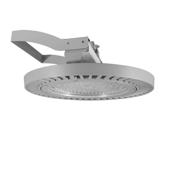powerful high-bay luminaire with lens optics for highest luminous efficiency, no inner pollution by integrated dust filter, light-head pivots through 36°, outstanding ease of maintenance, no UV and thermal emissions, thermal management with design-integrated passive cooling, light-head made from die-cast aluminium, mounting and fixing bracket for ballast made from sheet steel, lens optics made from clear polycarbonate, screw mounting via wall bracket, 3-pole plug connection to mains, ballast (LED converter) integrated
