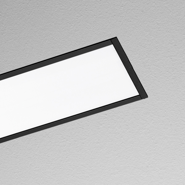 linear luminaire for recessed mounting into plasterboard, symmetrical light distribution and illumination, outstanding ease of maintenance, no UV and thermal emissions, aluminium housing with filigree trim (5 mm), end covers made from die-cast zinc, opal flush acrylic glass diffuser with profile guide and tool-free snap-in technology, quick-mounting via clamps, 5-pole terminal block, ballast (LED converter DALI, dimmable) integrated