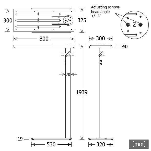 free-standing luminaire with direct-indirect illumination for uniform and absolutely glare-free workplace lighting, can be combined with insert luminaire OPT-R... and pendant luminaire OPT-P..., light component: direct 20% / indirect 80%, direct and indirect light component with separate dimming and switching, outstanding ease of maintenance, no UV and thermal emissions, innovative tube technology for glare-free illumination, advanced lens optics with a standard beam angle of 60°, light-head made from aluminium with micropoint optics rounded design (desired angle can be adjusted via screws by +/- 3°), colour combinations top/bottom of light-head: black/white, white/white and RAL/RAL, rectangular stand made from aluminium, standard base made from steel St37 (special version ZBB 002 please indicate when ordering), switchDIM with memory function (ON/OFF short pushbutton press, dimming UP/DOWN long pushbutton press), central plug connection to mains (length of connecting cable: approx. 3000 mm), white/black luminaire / black cable, white/white luminaire / white cable, ballast (LED converter) integrated in the stand