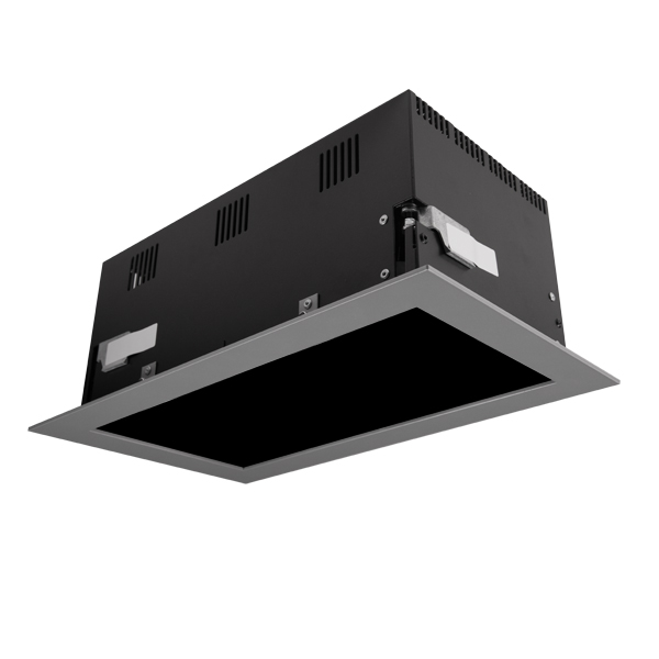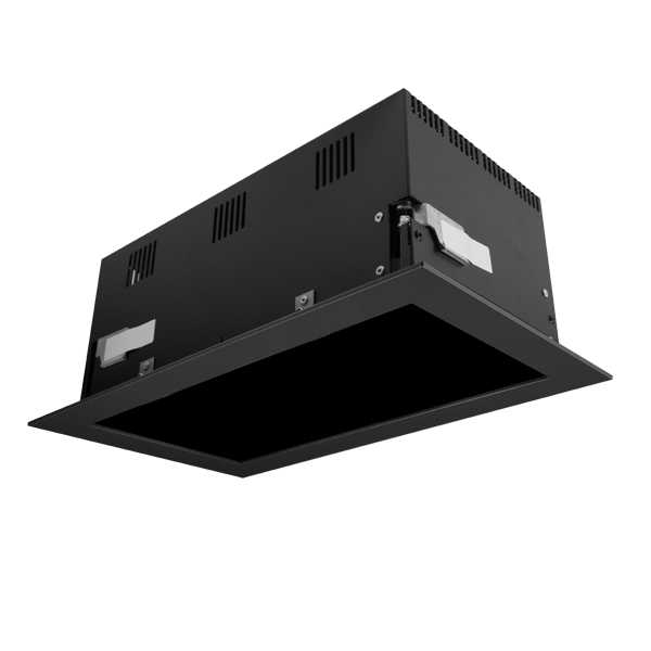 flexible recessed spotlight system consisting of recessed housing and light-heads inclusive ballasts (light-heads to be ordered separately), 2-lamp recessed housing made from sheet steel (inner housing in black), selected light-heads are pre-assembled in the factory, easy ceiling mounting via adjustable clamping wings (variable ceiling thickness)