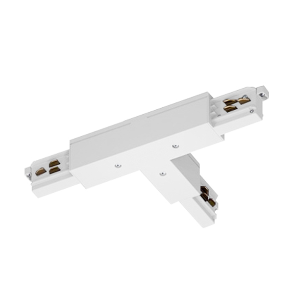 t-connector with polarity outside left and feed-in, material: polycarbonate, copper alloy contacts, max. electrical load: AC mains power supply 3.6 kVA, 3-phase network 3 x 3.6 kVA = 10.8 kVA, rated current and voltage: 16 A / 440 V (1 A / 50 V AC FELV), tool-free snap-in fixing, terminals with screws