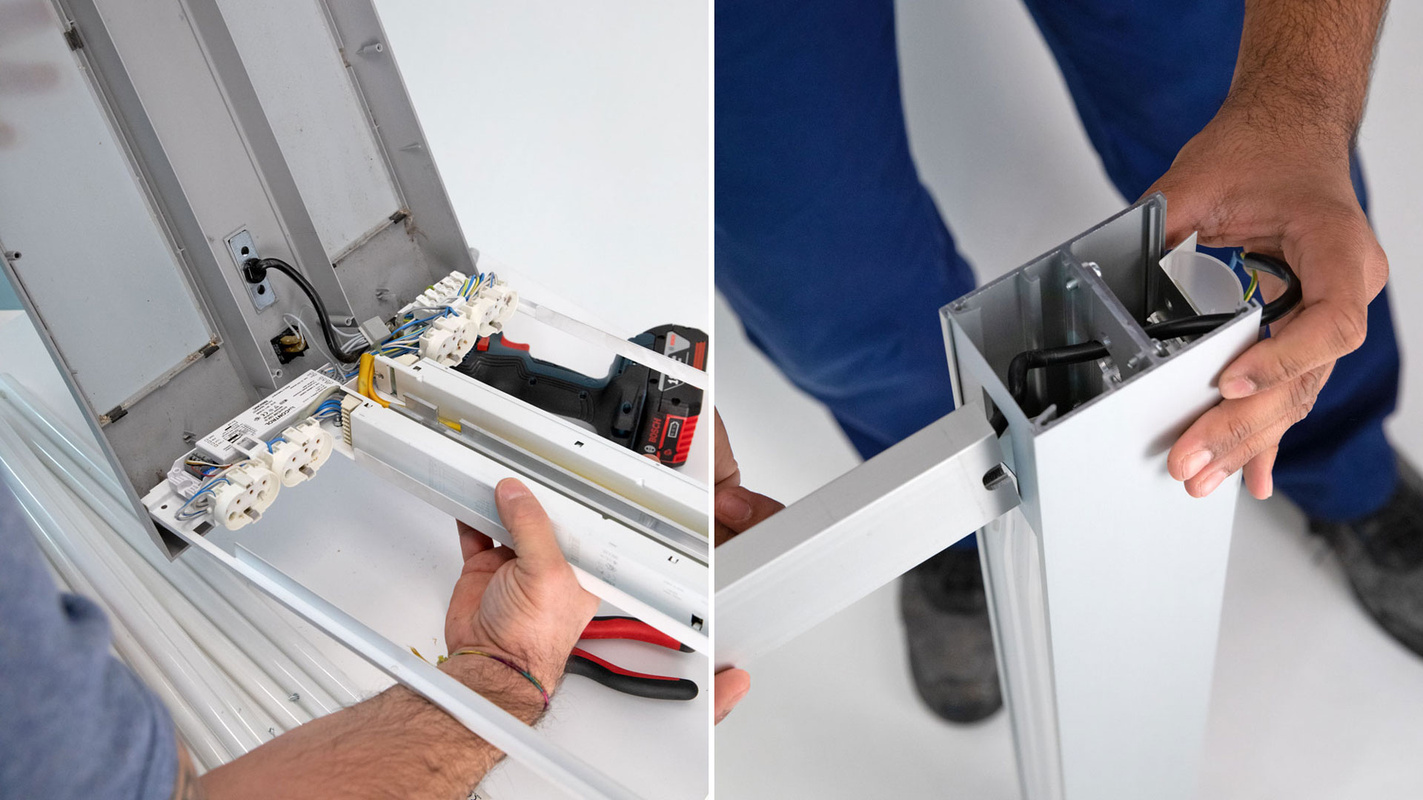 The almost tool-free installation guaranteed a smooth and fast exchange of the old light heads, which were partially still equipped with T5 fluorescent lamps. Since only the light heads had to be replaced, it was possible to save valuable refurbishing time, the work caused less dirt and produced hardly any electrical waste. Another plus was that the staff of Dosenbach-Ochsner AG were able to replace the light heads themselves. All in all a worthy cause for the environment and an important contribution to resource conservation.