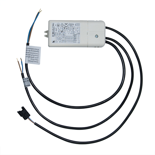 convertisseur LED à courant constant, corps en plastique avec presse-étoupe et bornes à vis, côté primaire : câble de branchement à 2 conducteurs 0,75 m2 avec embouts (longueur : 500 mm), côté secondaire : câble de branchement à 2 conducteurs 0,5 m2 avec connecteur à fiche 3M Miniclamp (longueur : 500 mm) et câble de branchement DALI à 2 conducteurs 0.5 m2 avec embouts (longueur : 500 mm), protection contre surchauffe, court-circuit et surtension, protection contre les courants de crête du réseau, courant de sortie : 350 mA DC, tension de sortie : max. 43 V DC, puissance de sortie : 0 - 20 W, température ambiante : -25...+45 °C