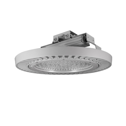 leistungsstarke Hallenleuchte mit Linsenoptik für höchste Lichteffizienz, keine innere Verschmutzung durch integrierten Staubfilter, Lichtkopf 36° schwenkbar, hohe Wartungsfreundlichkeit, keine UV- und Wärmestrahlung, Wärmemanagement mit formintegrierter Passivkühlung, Lichtkopf aus Aluminiumdruckguss, Montage- und Befestigungsbügel für Betriebsgerät aus Stahlblech, Linsenoptik aus klarem Polycarbonat, Schraubmontage an der Decke über Befestigungswinkel, 3-poliger Steckverbinder für Netzanschluss, Betriebsgerät (LED-Konverter) integriert