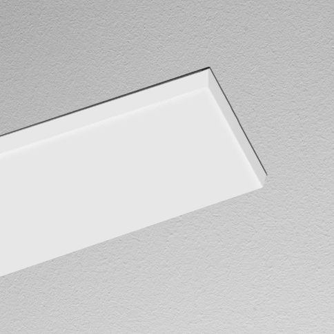 Linearleuchte für Einbau in Gipskarton, symmetrische Lichtverteilung und Ausleuchtung, hohe Wartungsfreundlichkeit, keine UV- und Wärmestrahlung, Gehäuse mit dezentem Rand (5 mm) aus Aluminium, Enddeckel aus Zinkdruckguss, Acrylglasdiffusor opal vorgesetzt (19 mm) mit Profilführung und werkzeugloser Einrasttechnik, Schnellmontage über Spannbügel, 5-polige Anschlussklemme, Betriebsgerät (LED-Konverter DALI, dimmbar) integriert